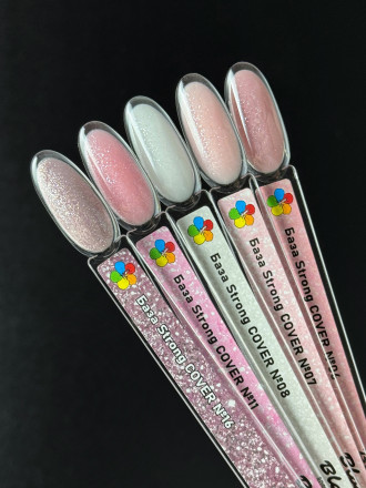 Базу следует наносить на подложку из прозрачной базы Стронг или Руббер.